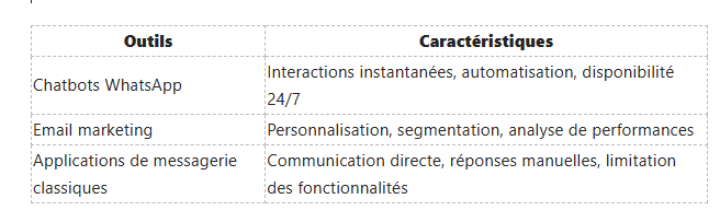 - Les chatbots WhatsApp automatisent les réponses aux clients, réduisant le temps d'attente.