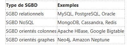 types de systèmes de gestion de bases de données (SGBD) disponibles. Ces systèmes peuvent être classés en deux grandes catégories : les