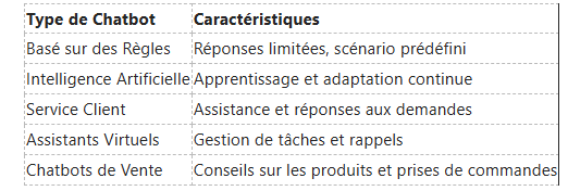 Types de Chatbots Disponibles