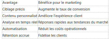 - Elle optimise l'analyse des données, offrant des insights précieux sur le comportement des consommateurs.